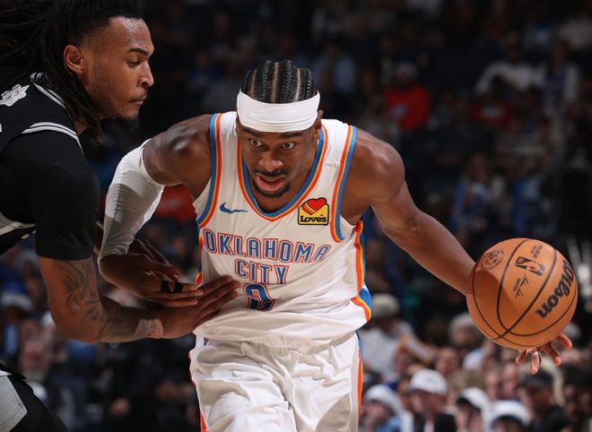 這種看似隨意卻高效的得分,他每晚都會(huì)貢獻(xiàn)多次。過(guò)程或許不夠流暢,甚至令人困惑,但確實(shí)有效。他倒地伸展身體完成終結(jié)的動(dòng)作,讓人不禁聯(lián)想到雷霆的MVP亞歷山大——那種能到達(dá)常人無(wú)法觸及區(qū)域的能力。
