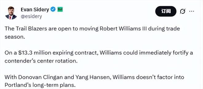 談及羅威,名記Sidery表示,交易截止日前,開拓者隊(duì)愿意聽取關(guān)于羅威的交易報(bào)價(jià)。羅威本賽季的合同為1330萬美元,且即將到期,他能夠立即補(bǔ)強(qiáng)爭(zhēng)冠球隊(duì)的中鋒輪換陣容。開拓者在五號(hào)位的位置上擁有克林根和楊瀚森,羅威已不在球隊(duì)的長(zhǎng)期規(guī)劃之中。