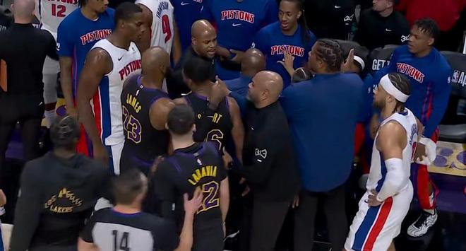 回到比賽湖人這邊依舊是詹姆斯帶隊打,一上來就中投不中,坎寧安到內(nèi)線坐打斯瑪特輕松頂翻上空藍,回過來斯瑪特被吹掩護犯規(guī),防守端又吃到防守犯規(guī),這麻煩了??矊幇猜朴频絻?nèi)線比分變成40-30落后兩位數(shù)了,詹姆斯自己運球失誤,斯圖爾特到內(nèi)線又空了,詹姆斯持球被犯規(guī),東契奇趕緊回來場面要失控了。艾頓中距離打鐵,坎寧安瀟灑分球內(nèi)線斯圖爾特被犯規(guī)了,兩罰全中第二節(jié)前兩分鐘活塞打了湖人一波8-0領先來到14分,詹姆斯持球過半場雷迪克喊出暫停!拉拉維亞三分打鐵,詹姆斯三分三不沾好在有前場板,詹姆斯弧頂被放空繼續(xù)投三分終于有了,霍蘭掩護犯規(guī)回過來被東契奇單打35-44分差回到9分。杜倫內(nèi)線一步過掉艾頓后者賠上犯規(guī),兩罰穩(wěn)穩(wěn)把握住,東契奇再造霍蘭打手兩罰不中,湯普森上來換下霍蘭。