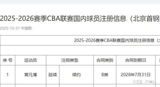 2025-26賽季CBA常規(guī)賽第九輪比賽即將開打,元旦假期的“京粵大戰(zhàn)”也正式進(jìn)入最后倒計(jì)時(shí)。賽前,一則關(guān)于實(shí)力不俗的北京首鋼男籃緊急注冊(cè)曾凡博的消息沸沸揚(yáng)揚(yáng)。據(jù)CBA官方公示信息來看,北京首鋼隊(duì)已正式完成鋒線核心曾凡博的注冊(cè)手續(xù),雙方簽訂的是一份為期三年的B類合同。這意味著,此前因合同問題缺席賽季初期部分比賽的鋒線大側(cè)翼曾凡博,已完全具備代表北京首鋼隊(duì)出戰(zhàn)的資格,并確認(rèn)在明晚主場(chǎng)迎戰(zhàn)奪冠大熱門廣東男籃的比賽中迎來本賽季的首秀。