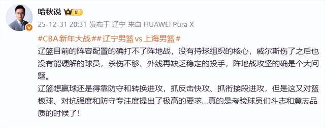 著名遼寧媒體人哈秋老師則表示:遼籃目前的陣容配置的確打不了陣地戰(zhàn),沒(méi)有持球組織的核心,威爾斯傷了之后也沒(méi)有能硬解的球員,殺傷不夠、外線再缺乏穩(wěn)定的投手,陣地戰(zhàn)攻堅(jiān)的確是個(gè)大問(wèn)題。遼籃想贏球還是得靠防守和轉(zhuǎn)換進(jìn)攻,抓反擊快攻、抓銜接段進(jìn)攻,但是這又對(duì)籃板球、對(duì)抗強(qiáng)度和防守專(zhuān)注度提出了極高的要求…真的是考驗(yàn)球員們斗志和意志品質(zhì)的時(shí)候了!