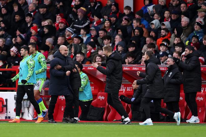 但很快人們就清楚,即便曼城帶著尋求十一連勝的目標(biāo)進(jìn)入比賽,這也不會是一場輕松的漫步。他們在開場的大部分時間里都難以創(chuàng)造機(jī)會,直到第20分鐘,哈蘭德在森林中衛(wèi)穆里略傳球失誤后獲得機(jī)會,但他的射門被擋出,這也是曼城本場比賽的首次嘗試。