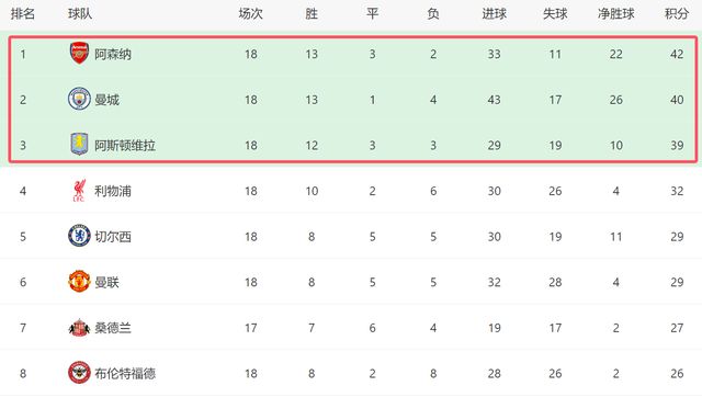 由于本輪阿森納和曼城,也以2-1分別擊敗各自的對手,因此榜首的形勢沒有發(fā)生變化。截至目前,阿森納依然排名第一,他們領(lǐng)先第二的曼城2分,維拉則落后榜首3分,繼續(xù)排名第三。巧合的是,下一輪比賽,阿森納就將在主場迎戰(zhàn)維拉,這場比賽的結(jié)果,將對積分榜的形勢,有重大影響。