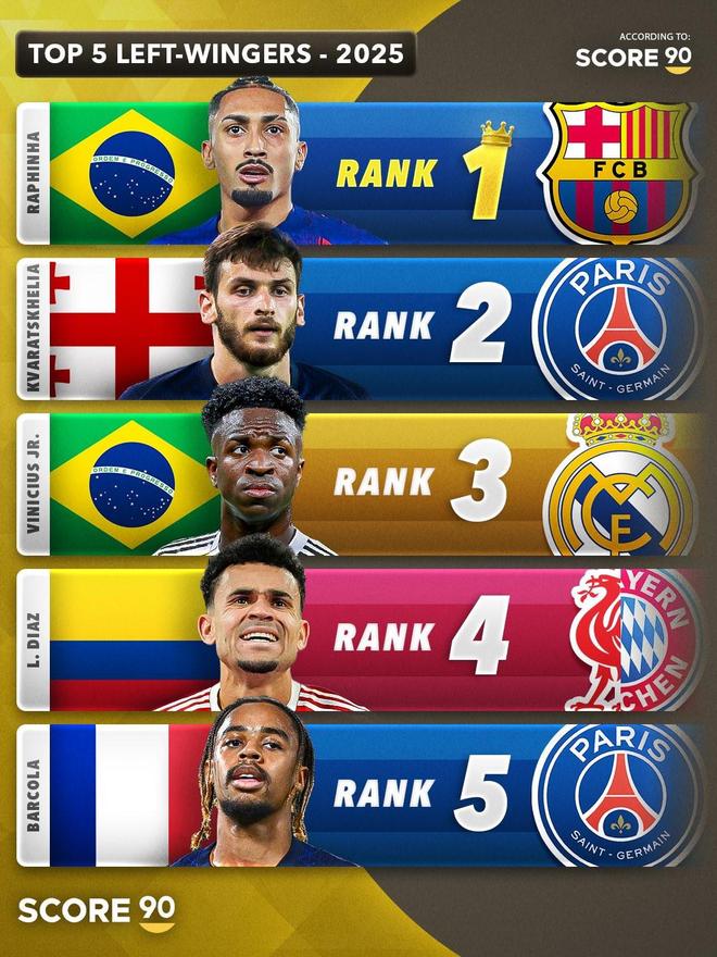 Score90評選的2025年五大左邊鋒