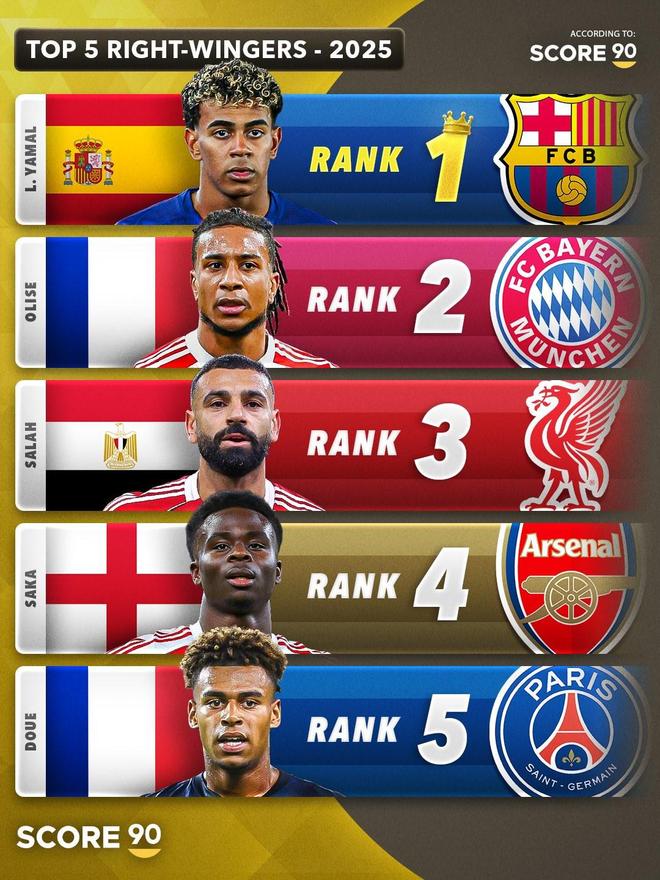 Score90評選的2025年五大右邊鋒