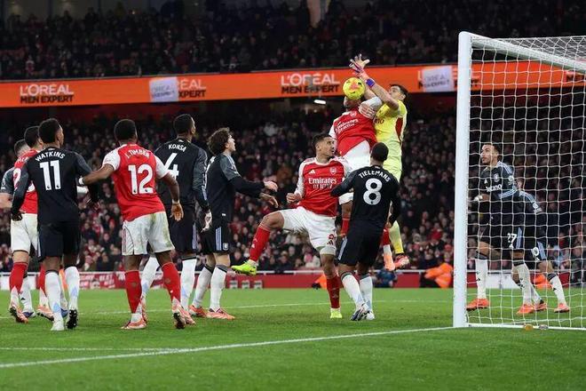 上半場比賽,阿森納在主場占據(jù)了一定優(yōu)勢,約克雷斯兩次頭球搶點(diǎn)制造險(xiǎn)情。而維拉則依靠反擊在客場制造威脅。尤其是第45分鐘,桑喬傳中送出半單刀,薩利巴關(guān)鍵破壞,避免了阿森納丟球。進(jìn)入下半場,主場作戰(zhàn)的阿森納開始發(fā)威。第48分鐘, 阿森納全場首次角球機(jī)會(huì),傷愈回歸重返首發(fā)的加布里埃爾便頭槌建功,幫助槍手取得1-0領(lǐng)先。