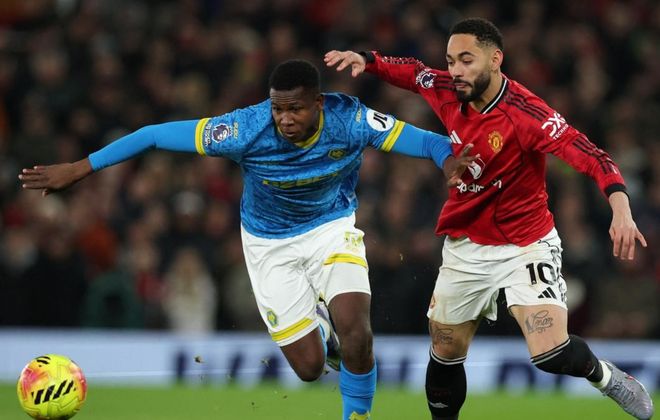 曼聯(lián)排出了4231陣型。謝什科頂在最前面。多古、齊爾克澤和庫尼亞的進攻組合聯(lián)袂出擊??ㄈ琢_和烏加特組成雙后腰。達洛特、艾登-海文、利桑德羅和盧克-肖4后衛(wèi)首發(fā)出戰(zhàn)。拉門斯擔任首發(fā)門將。布魯諾-費爾南德斯因傷缺陣。姆伯莫、迪亞洛和馬茲拉維去國家隊踢比賽缺席。