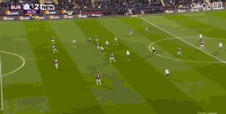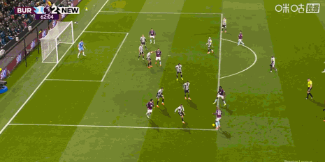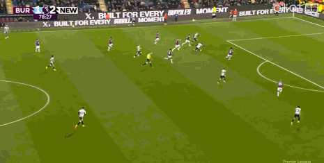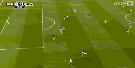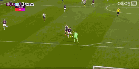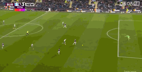 第90+2分鐘,伯恩利后場失誤,吉馬良斯吊射破門,紐卡3-1