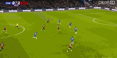 第23分鐘,加納喬助攻,恩佐勁射破門,切爾西2-1