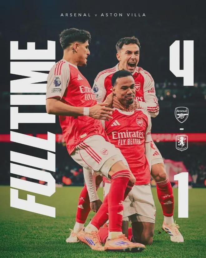 當沃特金斯在補時階段為維拉打入安慰性進球時,酋長球場的大屏幕上顯示著4-1的比分。比分數(shù)更重要的是,阿森納將領(lǐng)先優(yōu)勢擴大到5分,并終結(jié)了直接爭冠對手的強勁勢頭。